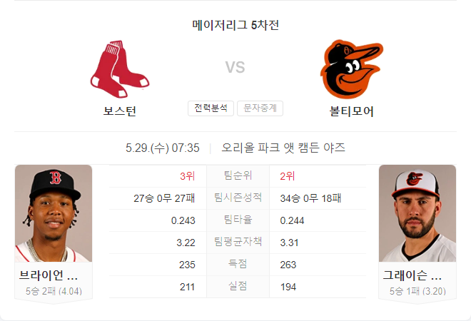 이번 경기는 양 팀 모두 안정적인 선발 투수를 앞세우고 있어 팽팽한 승부가 예상됩니다. 보스턴은 브라이언 벨로의 꾸준한 투구와 강력한 타선을 바탕으로 경기를 풀어갈 것으로 보입니다.