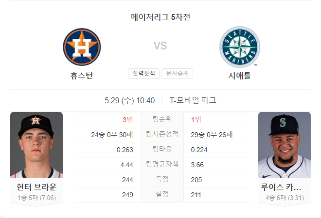 애스트로스는 불펜이 최근 1.13 ERA로 좋은 성적을 보이고 있으나, 하비에르의 부재가 예상됩니다. 반면, 매리너스는 카스티요가 꾸준한 성적을 보이고 있어 유리한 상황입니다.
