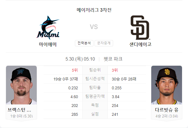 다르빗슈의 안정적인 투구와 파드리스 타선의 균형 잡힌 공격력을 바탕으로, 샌디에이고 파드리스가 승리할 가능성이 높습니다.