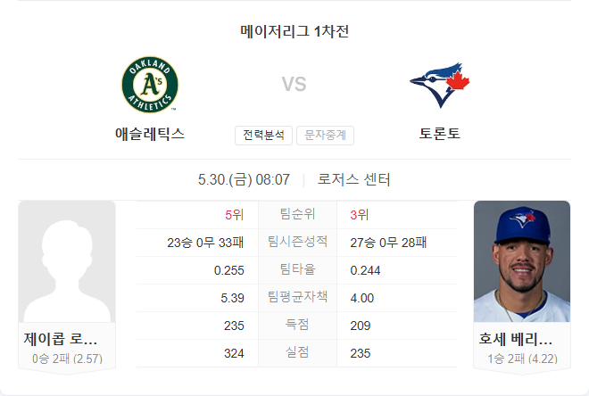 애슬레틱스는 타선 침묵과 불펜 난조로 인해 경기 후반 흐름을 자주 놓치고 있으며, 로페스의 호투에도 불구하고 승리와 연결되지 못하는 경우가 많습니다. 반면 블루제이스는 베리오스가 다소 기복 있는 투구를 보이고 있으나, 애슬레틱스의 빈약한 타선을 상대로 실점 억제가 가능할 것으로 보입니다.