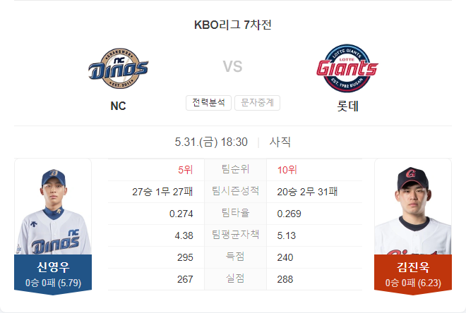 | 5월 30일 KBO 프로야구 기아 타이거즈 VS NC 다이노스 타카짱의 경기 예측 분석 (0) | 2024.05.30 |
