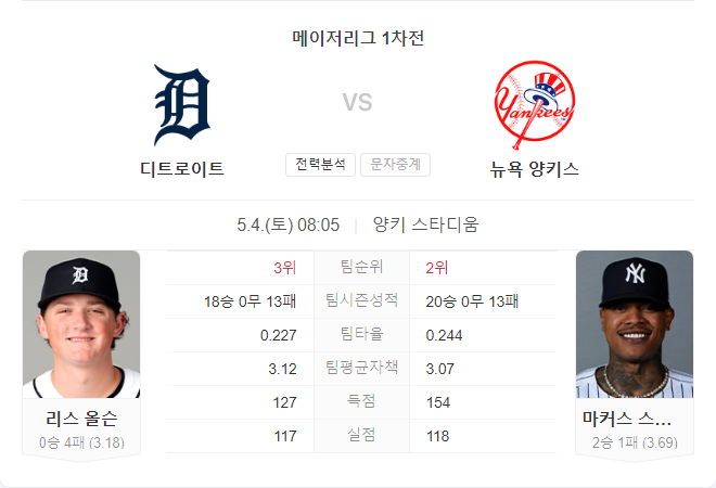 반면, 스트로먼이 자신의 기량을 회복하고 양키스 타선이 홈에서 반등한다면 경기는 더욱 치열해질 수 있습니다. 그러나 현재로서는 디트로이트가 경기 초반에 리드를 잡고 이를 끝까지 지킬 가능성이 높아 보입니다.
