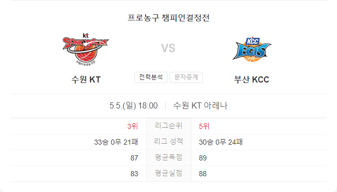 | 5월 3일 KBO 프로농구 부산 KCC VS 수원 KT 타카짱의 경기 예측 분석 (0) | 2024.05.03 |
