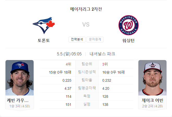토론토 블루제이스는 원정 경기에서 부진한 모습을 보이며 최근 5경기에서 1승 4패를 기록했습니다. 반면 워싱턴 내셔널스는 최근 7경기에서 5승을 거두며 상승세를 타고 있습니다.