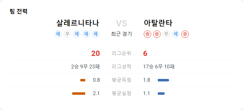 살레르니타나와 아탈란타는 각각 강등 확정과 유로파리그 피로 누적으로 인해 이번 경기에서 높은 동기부여를 찾기 어려울 수 있습니다. 객관적인 전력에서 아탈란타가 우세하지만, 원정 경기라는 점과 주중 일정으로 체력이 소진된 상태라는 것을 감안해야 합니다. 이 경기는 무승부 가능성과 언더(2.5골 이하) 양상에 주목해 볼 만합니다.