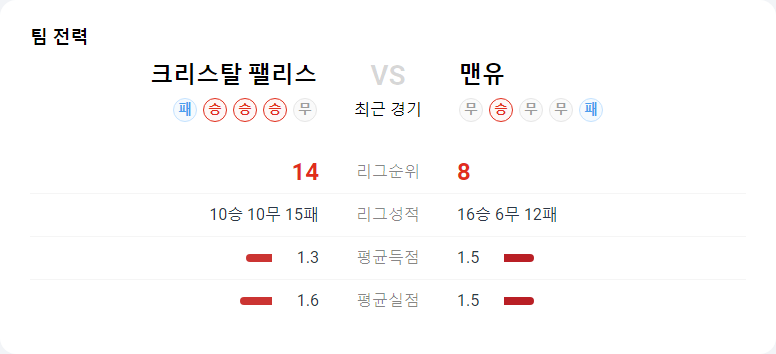 맨유는 유럽 대항전 진출을 위해 6위 자리를 지키고자 최선을 다해야 합니다. 7위 뉴캐슬이 바짝 추격 중인 만큼, 맨유 선수들은 승점 3점을 위해 경기에 집중할 것으로 예상됩니다. 팰리스는 특별한 동기 부여가 없어 보이며, 맨유의 우세가 예상되는 가운데 언더(2.5골 이하) 경기가 될 가능성이 높습니다.