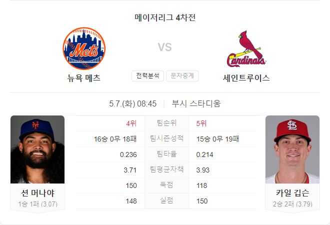 세인트루이스 카디널스는 시카고 화이트삭스와의 경기에서 연장전 끝에 패배하며 어려운 시리즈를 마무리했습니다. 내셔널 리그 중부지구에서 현재 15승 18패로 4위에 위치하고 있습니다. 선발 투수 스티븐 매츠의 부상으로 로테이션을 조정하여 카일 깁슨이 이번 경기에 출전합니다.