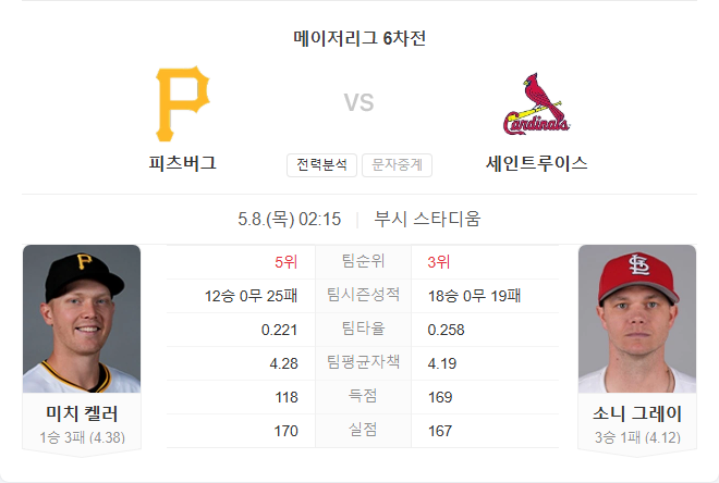 파이리츠는 미치 켈러가 세인트루이스를 상대로 좋은 기억이 있지만, 팀 전체적인 공격력 부진과 수비 실책이 많은 점이 여전히 큰 약점입니다. 반면 카디널스는 최근 상승세와 강력한 타선을 바탕으로 안정적인 경기 운영이 가능하며, 홈 경기에서의 높은 승률 역시 긍정적인 요소입니다.