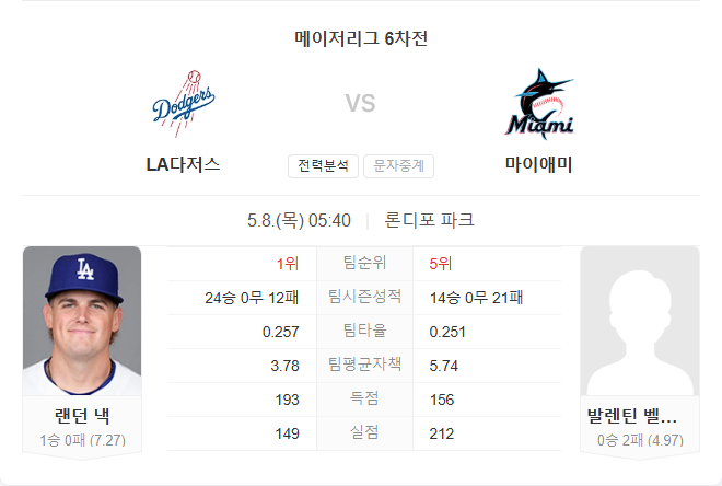 | 5월 8일 MLB 메이저리그 뉴욕 메츠 VS 애리조나 다이아몬드백스 타카짱의 경기 예측 분석 (0) | 2025.05.07 |