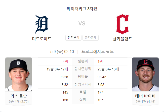 이번 경기는 두 팀의 최근 흐름과 선발 투수의 상태를 고려할 때 접전이 예상됩니다. 디트로이트는 올슨이 안정적인 피칭을 펼치면서 승리를 노릴 수 있지만, 클리블랜드는 홈에서의 강점과 타선의 활약을 바탕으로 경기를 풀어갈 것입니다. 또한, 양 팀 모두 최근 득점력이 떨어지고 있는 점을 고려하면, 저점수 경기가 될 가능성도 있습니다.