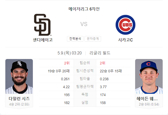 이번 경기는 두 팀의 선발 투수의 퍼포먼스에 크게 좌우될 것입니다. 파드리스의 다일런 시즈는 이번 시즌 안정적인 모습을 보여주고 있으며, 컵스의 헤이든 웨스네스키도 저자책점을 유지하며 좋은 모습을 보이고 있습니다. 벨린저의 복귀는 컵스에 긍정적이지만, 그가 과연 예전의 모습을 보여줄 수 있을지는 미지수입니다.