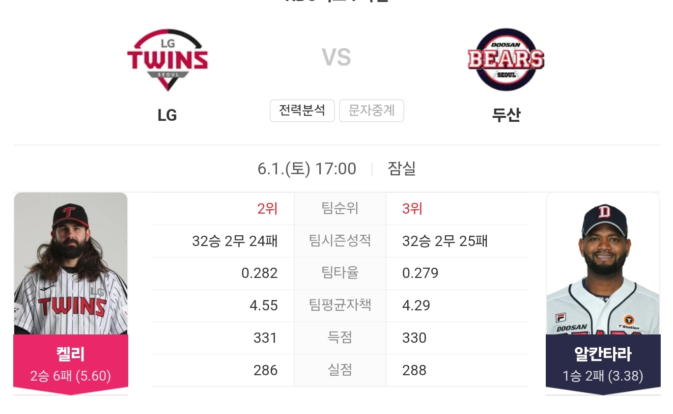 LG 트윈스는 최근 두산 베어스를 상대로 기선 제압에 성공하며 연승에 도전합니다. 선발 케이시 켈리는 최근 경기에서 좋은 투구 내용을 보여주며 6이닝 3실점으로 승리를 거두었습니다.