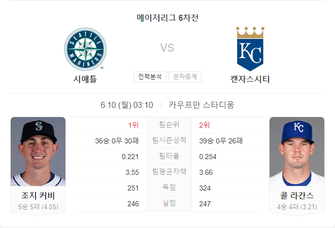 이번 경기는 홈에서 강한 캔자스시티 로열스의 승리가 예상됩니다. 시애틀의 공격력이 다소 부족한 반면, 캔자스시티는 공격과 수비에서 모두 우수한 성적을 보이고 있습니다.