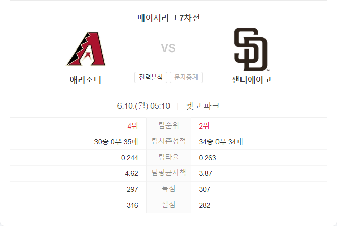 이번 경기에서는 샌디에이고 파드리스가 홈에서 유리한 위치를 차지할 것으로 예상됩니다. 파드리스는 강력한 타선을 바탕으로 다이아몬드백스의 약한 투수진을 공략할 가능성이 높습니다. 반면, 다이아몬드백스는 최근의 좋은 성적에도 불구하고, 원정 경기에서의 부진과 불안정한 투수진이 변수로 작용할 수 있습니다. 파드리스는 이번 경기를 통해 홈 시리즈 승리를 확정 지을 가능성이 높습니다.