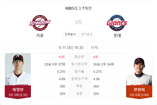 키움 히어로즈는 6월 8경기에서 3승 5패를 기록하며 다소 부진한 성적을 보였습니다. 올 시즌 롯데 자이언츠를 상대로는 5승 1패로 강세를 보였지만, 최근 들어 투타 모두에서 불안정한 모습을 보이고 있습니다. 특히, 불펜진이 최근 5경기에서 평균자책점 4.82를 기록하며 안정감을 잃고 있는 상황입니다. 이는 경기 후반부에 키움이 불안정한 모습을 보일 가능성이 있음을 시사합니다. 팀 타율 또한 낮아진 상태로, 타선의 집중력 회복이 시급합니다.