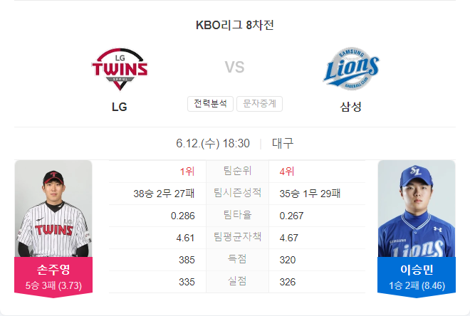 | 6월 11일 KBO 프로야구 한화 이글스 VS 두산 베어스 타카짱의 경기 예측 분석 (0) | 2024.06.10 |