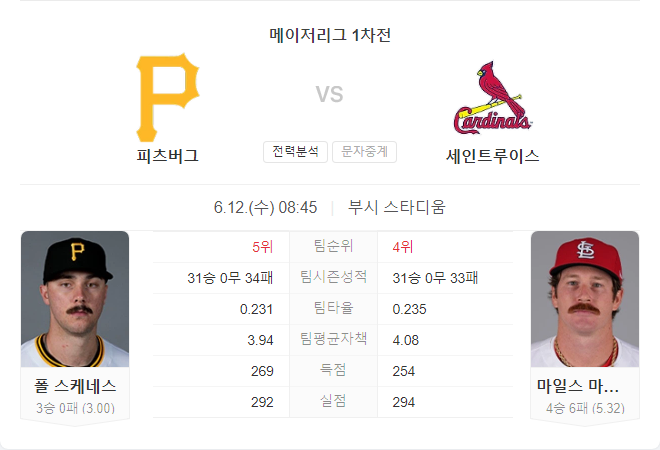 피츠버그 파이어리츠는 신인 투수 폴 스켄스의 안정적인 투구와 함께, 세인트루이스 카디널스의 홈 경기 부진을 이용해 승리할 가능성이 높습니다. 카디널스는 공격력에서 큰 개선이 필요하며, 피츠버그는 이번 경기에서 좋은 성과를 기대할 수 있습니다. 스켄스는 이번 시즌 뛰어난 성적을 기록하고 있어, 카디널스의 공격을 막아낼 수 있을 것으로 보입니다. 양 팀의 공격력이 다소 부족하기 때문에 낮은 점수 경기가 예상됩니다.