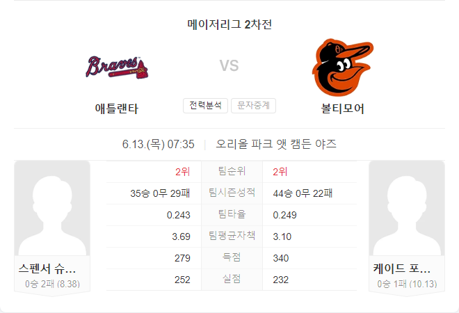 이번 경기는 볼티모어 오리올스의 우세가 예상됩니다. 애틀랜타 브레이브스는 최근 부진한 경기력을 보이고 있으며, 선발 투수 슈웰렌바흐의 부진이 이어질 가능성이 큽니다. 반면, 오리올스는 홈에서 강한 모습을 보이며, 타선의 파괴력으로 경기를 주도할 것으로 예상됩니다. 포비치가 안정적인 피칭을 보여줄 경우 오리올스의 승리 가능성이 높아집니다.