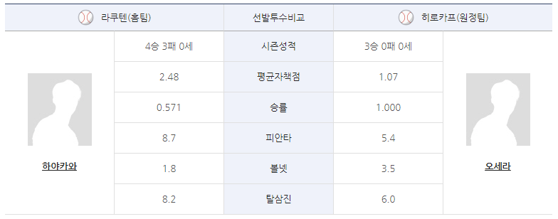오늘 경기의 선발 투수는 하야카와 다카히사로, 그는 6월 7일 경기에서 7이닝 무실점 7탈삼진을 기록하며 4승 3패를 달성했습니다. 하야카와는 최근 안정적인 피칭을 보여주고 있어, 히로시마 타선을 상대로 좋은 성적을 기대할 수 있습니다.