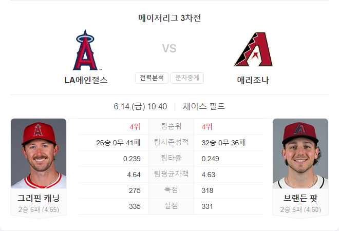 이번 경기는 두 팀 모두 부진한 시즌을 보내고 있는 만큼 치열한 승부가 예상됩니다. 그러나 다이아몬드백스는 홈에서 강력한 타선과 더불어 상대적으로 더 나은 성적을 기록하고 있어 승리 가능성이 높아 보입니다. 에인절스는 최근 타격 부진과 불안정한 투수진으로 인해 어려운 경기가 예상됩니다.