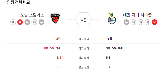 특히 대전과의 경기에서는 항상 상성에서 우위를 점하며, 간격 유지와 수비가 잘 되는 팀으로 평가받고 있습니다. 포항은 대전과 같은 공격적인 팀을 상대로 간결한 플레이를 통해 이익을 보는 경향이 강합니다.