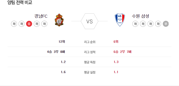 이번 경기는 양 팀 모두 수비와 중원에서의 불안정한 모습을 보이고 있어, 많은 득점을 기대하기 어려울 것으로 보입니다. 경남은 수비 간격 유지에서 문제를 보이고 있지만, 수원 삼성도 중원을 효과적으로 활용하지 못하고 있어 단기적으로 경기력을 향상시킬 기미가 보이지 않습니다. 무승부를 예상합니다.