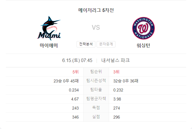 마이애미는 이번 경기에서 메이어의 기복 있는 성적이 불안 요소로 작용할 수 있습니다. 반면, 워싱턴은 고어의 안정적인 투구와 최근 좋은 성적을 바탕으로 유리한 경기를 펼칠 것으로 보입니다. 워싱턴 내셔널스가 홈에서 승리할 가능성이 높습니다.