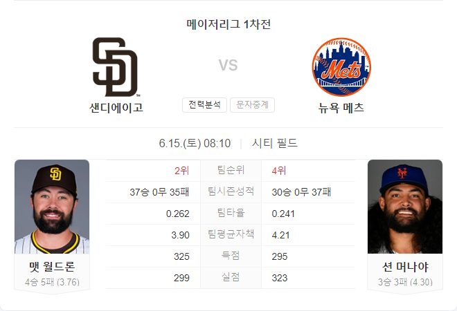 또한, 메츠의 선발 투수 션 마네아는 최근 경기에서 어려움을 겪고 있어, 파드리스의 공격력을 감당하기 어려울 것으로 보입니다. 따라서 이번 경기는 샌디에이고 파드리스의 승리가 예상됩니다.