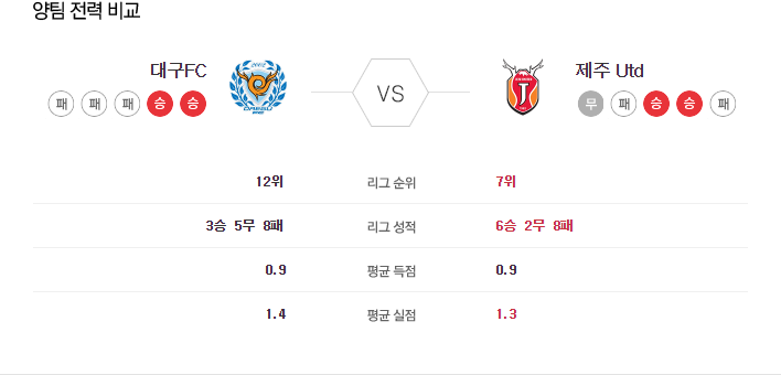 6월 16일 K리그 대구 VS 제주 타카짱의 경기 예측 분석