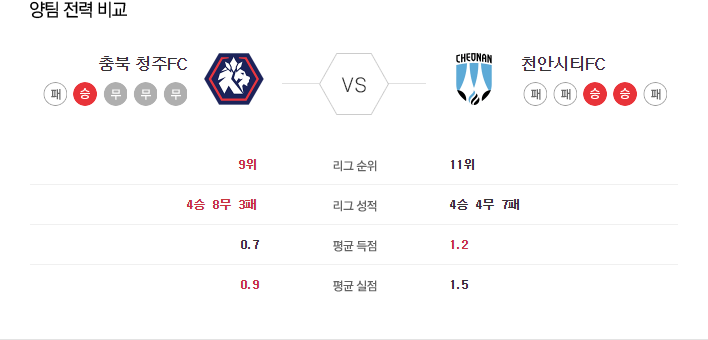 충북청주는 현재 대한민국 2부 리그에서 8위를 기록하고 있으며, 최근 5경기에서 1승 3무 1패를 기록 중입니다. 특히 천안을 상대로는 강점을 보이고 있어 이번 경기에서도 유리한 위치에 있습니다.