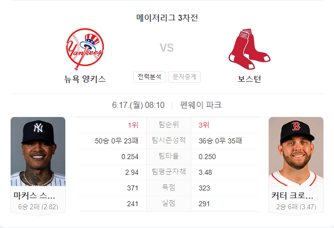 뉴욕 양키스는 이번 시즌 가장 강력한 팀 중 하나로, 타격과 투수 모두에서 뛰어난 성적을 기록하고 있습니다. 스트로먼은 이번 시즌 원정 경기에서 5승 무패를 기록하며 평균자책점 1.56을 기록하고 있습니다.