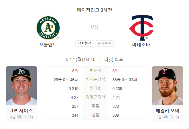 6월 17일 MLB 클리블랜드 가디언스 VS 토론토 블루제이스 타카짱의 경기 예측 분석 (0) | 2024.06.16 |