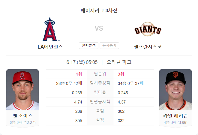 이번 경기는 샌프란시스코 자이언츠가 승리할 가능성이 높습니다. 에인절스는 이번 시즌 좌완 투수를 상대로 고전하고 있으며, 불펜도 신뢰하기 어려운 상황입니다. 반면, 자이언츠는 낮 경기에서 강세를 보이며, 특히 홈경기에서 강력한 모습을 보여주고 있습니다.