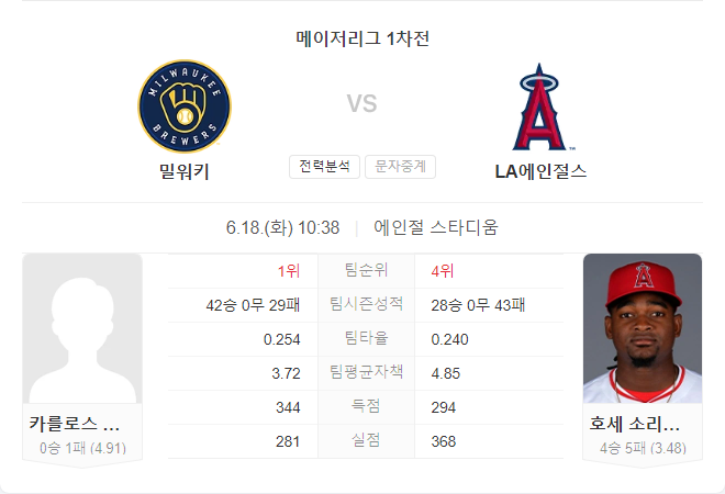 이번 경기에서 LA 에인절스가 승리할 가능성이 높습니다. 호세 소리아노는 안정적인 투구를 보여주고 있으며, 밀워키 브루어스의 타선은 최근 부진한 모습을 보이고 있습니다. 특히, 에인절스는 최근 우완 투수들을 상대로 좋은 성적을 기록하고 있어, 카를로스 로드리게스를 상대로도 좋은 타격을 이어갈 것으로 보입니다.