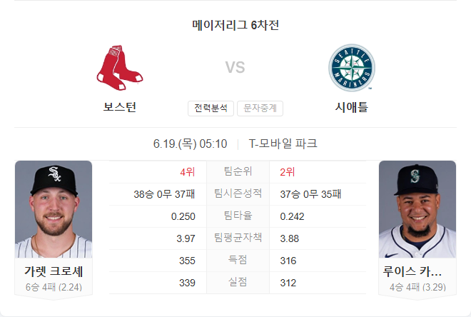 보스턴 레드삭스는 강력한 선발투수 가렛 크로셰의 초반 리딩과 타선의 꾸준한 득점력이 경기 주도권을 잡는 데 유리하게 작용할 것입니다. 시애틀 매리너스는 활발한 타선에도 선발진의 불안정함이 걸림돌로 작용할 가능성이 커, 중반 이후 역전을 노리기 어려운 상황입니다.