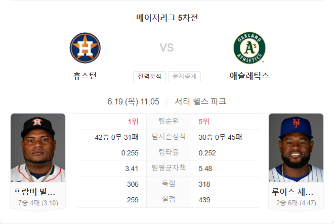 애슬레틱스는 최근 연승 분위기와 장타력을 앞세워 상승세를 보이고 있으나, 선발 매치업에서는 확실히 밀리는 양상입니다. 발데스는 최근 완벽에 가까운 피칭을 이어가고 있으며, 애슬레틱스를 상대로도 강한 면모를 보여왔습니다.