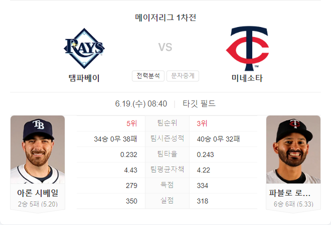 미네소타 트윈스는 이번 경기에서도 우세할 것으로 예상됩니다. 트윈스는 평균 4.64점의 득점을 기록하며, 탬파베이 레이스보다 훨씬 안정된 타선과 선발진을 보유하고 있습니다.
