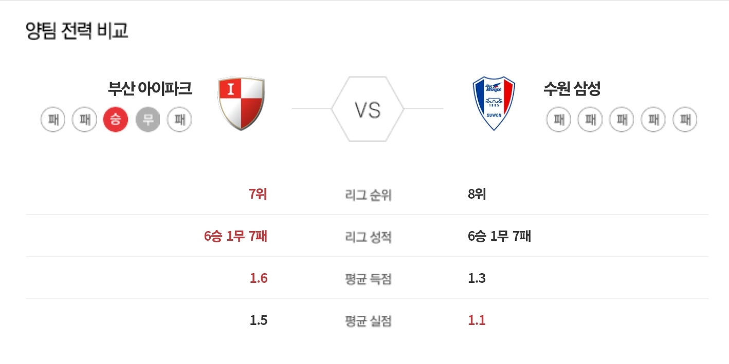 부산은 현재 대한민국 2부 리그에서 8위를 기록하고 있으며, 최근 5경기에서는 1승 1무 3패를 기록하고 있습니다. 홈 성적의 기복이 심하지만, 수원삼성을 상대로는 어느 정도 자신감을 가질 수 있습니다.