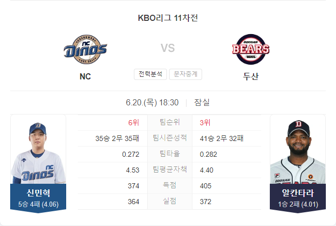 이번 경기는 NC 다이노스가 승리할 가능성이 높아 보입니다. 신민혁과 알칸타라 모두 최근 경기에서 불안한 피칭을 보여주고 있어, 이번 경기에서는 타선의 역할이 승패를 가르는 중요한 요소가 될 것입니다.