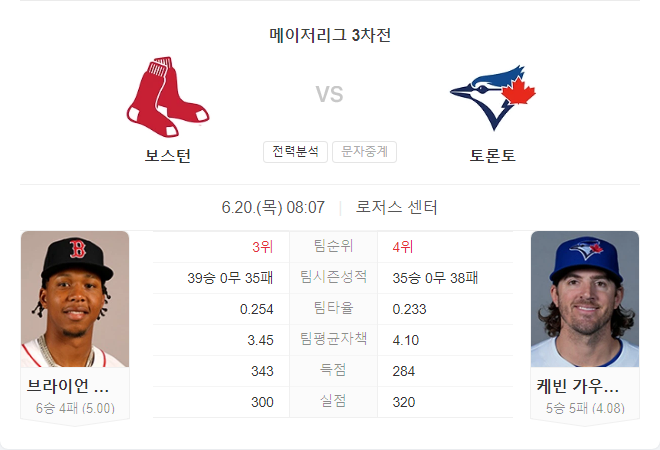 토론토 블루제이스는 최근 3경기 중 2경기를 승리하며 홈에서 좋은 성적을 기록하고 있습니다. 보스턴 레드삭스는 원정에서 안정적인 경기력을 보여주고 있지만, 토론토의 강력한 타선과 가우스만의 안정적인 투구에 어려움을 겪을 가능성이 있습니다. 브라얀 벨로가 최근 부진한 모습을 보였기 때문에, 토론토가 이를 활용해 득점 기회를 많이 만들 것으로 예상됩니다.
