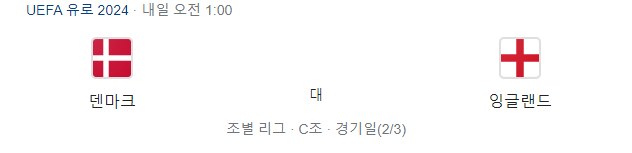 덴마크와 잉글랜드는 모두 첫 경기에서 인상적인 모습을 보여주지 못했습니다. 그러나 잉글랜드는 승리를 거두며 좋은 출발을 보였고, 덴마크는 후반전에 집중력이 떨어지며 슬로베니아에게 동점을 허용했습니다. 잉글랜드는 이번 경기에서 보다 적극적인 공격과 안정적인 수비를 통해 덴마크를 압도할 가능성이 큽니다.