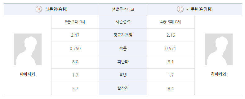 오늘 경기에 선발 투수로 나서는 야마사키 사치야는 현재 6승 2패를 기록하고 있으며, 6월 14일 경기에서는 2회 실점했지만 6승째를 기록했습니다. 그는 시즌 내내 꾸준한 피칭을 펼치며 팀의 선발진을 이끌고 있으며, 특히 홈 경기에서의 안정적인 피칭은 상대 타선에 큰 위협이 될 수 있습니다.
