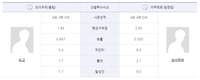 반면, 야쿠르트 스왈로즈는 선발 투수 요시무라 고지로가 다소 불안한 실점 관리를 보이고 있어, 요미우리의 강력한 타선을 상대로 어려운 경기를 펼칠 가능성이 높습니다.