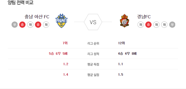 6월 22일 K리그2 충남아산 VS 경남 타카짱의 경기 예측 분석