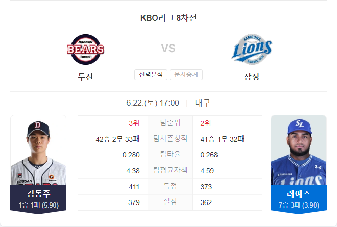 이번 경기는 두산 베어스가 우세할 것으로 예상됩니다. 두산은 최근 맞대결에서도 삼성 라이온즈를 상대로 승리한 바 있으며, 평균 득점과 수비 능력에서도 안정적인 모습을 보이고 있습니다.