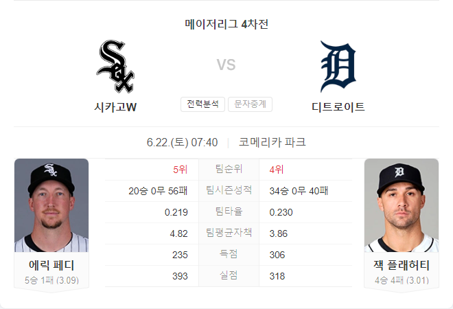 시카고 화이트삭스는 체력적인 문제와 주전 선수들의 부진으로 어려움을 겪을 가능성이 큽니다. 디트로이트 타이거즈는 홈 경기에서의 이점을 살려 승리를 거둘 가능성이 높습니다.