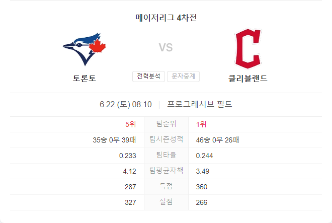 토론토 블루제이스는 최근의 부진을 극복하고 반전의 기회를 잡을 가능성이 높으며, 클리블랜드는 강력한 타선을 바탕으로 득점을 노리겠지만 카라스코의 투구가 큰 변수로 작용할 것입니다.