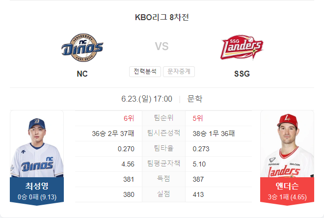 반면, SSG 랜더스는 최근 타격이 호조를 보이고 있으며, 홈 경기에서의 강한 모습을 유지하고 있습니다. SSG는 이번 경기에서도 타선의 집중력과 안정적인 투구를 바탕으로 NC 다이노스를 상대로 승리를 가져갈 가능성이 큽니다.