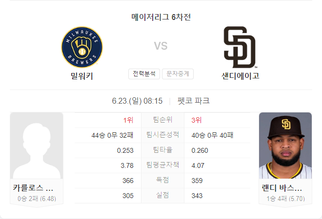 브루어스는 이번 경기에서 카를로스 로드리게스를 선발 투수로 내세웁니다. 로드리게스는 이번 시즌 아직 승리를 기록하지 못하고 있으며, 평균자책점 6.48로 다소 불안한 모습을 보이고 있습니다. 이전 경기에서는 4.2이닝 동안 6피안타 5실점을 기록하며 어려움을 겪었지만, 이번 경기에서는 좀 더 안정적인 투구를 통해 팀에 기여할 수 있기를 기대하고 있습니다.