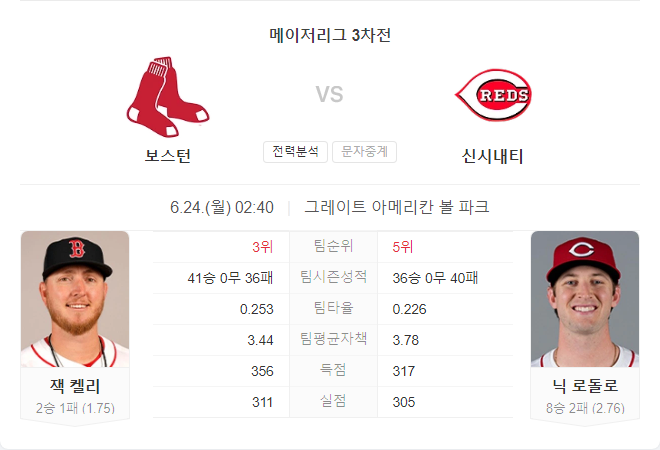 이번 경기는 두 팀의 선발 투수들이 모두 뛰어난 성적을 기록하고 있는 만큼, 투수전이 예상됩니다. 보스턴 레드삭스는 최근 타선에서 강력한 모습을 보이며 연승을 이어가고 있지만, 신시내티 레즈 역시 닉 로돌로의 안정적인 투구를 바탕으로 승리를 노리고 있습니다.